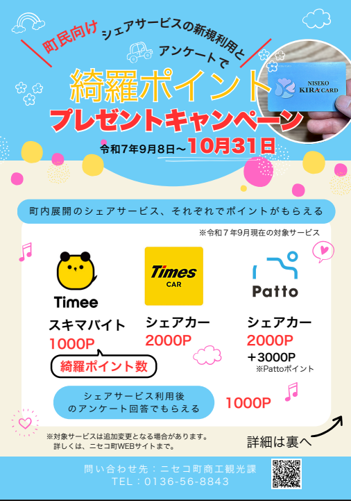 ニセコミライ・EVシェアカー「Pattoポイントプレゼントキャンペーン」実施中!