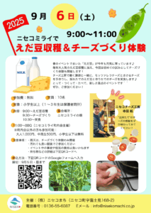 ご参加いただいた皆さん、ありがとうございました。今年からニセコミライの住民が増え、皆さんと一緒に枝豆の種まきから収穫までを体験できたことがとても嬉しいです。初のチーズづくり体験も大盛況で、それぞれに貴重な思い出になったのではないでしょうか。寺田さんも初のイベント講師だったので、良い経験になったそうです。住民主体のコミュニティを体感できる温かいイベントになりました!