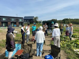 今年で3年目となる、ニセコミライの畑での枝豆栽培。春のイベントでまいた枝豆を収穫し、その場で茹でて美味しくいただきました。毎年、栽培のご指導とサポートをしてくださっているご近所のお2人も参加。
