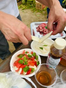 完成したチーズは、塩コショウで味つけするだけで、とても美味しい!更にトマトとバジルをのせれば、おしゃれな一品・カプレーゼのできあがり♪できたてのチーズの味に皆さん、感動していました。