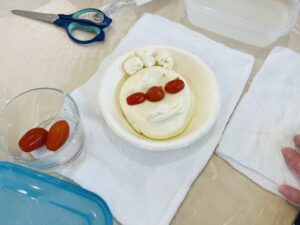 その他、ハートや玉ねぎのような可愛くユニークなチーズもありました。ご自身の作品に愛着をもたれ、試食後に残ったものは、家での楽しみにとお持ち帰りいただきました。