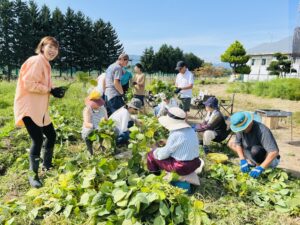 今年は例年に比べて実の入りが悪く、心配していましたが、味が濃く、美味しい枝豆を味わえたので、一安心。枝豆の収穫が初めての中学生も一生懸命に作業してくれ、「みんなで育て、みんなで収穫する」という一体感が感じられる、温かいひとときとなりました。